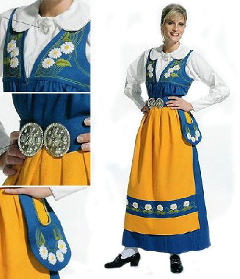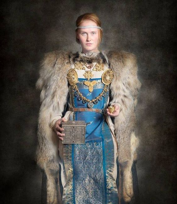 Женщины так же носили длинные рубахи, плащи и лишь со времени влияния иноземцев на скандинавскую одежду костюм женщин стал отличаться от мужского. Появляется длинная, иногда даже со шлейфом, рубаха с большим вырезом. Женщины бедные шили такие рубахи из холста или полотна, а богатые, носившие их дома без верхнего одеяния, из шелка с роскошными вышивками по краям, причем вырез на груди прикрывался платком.