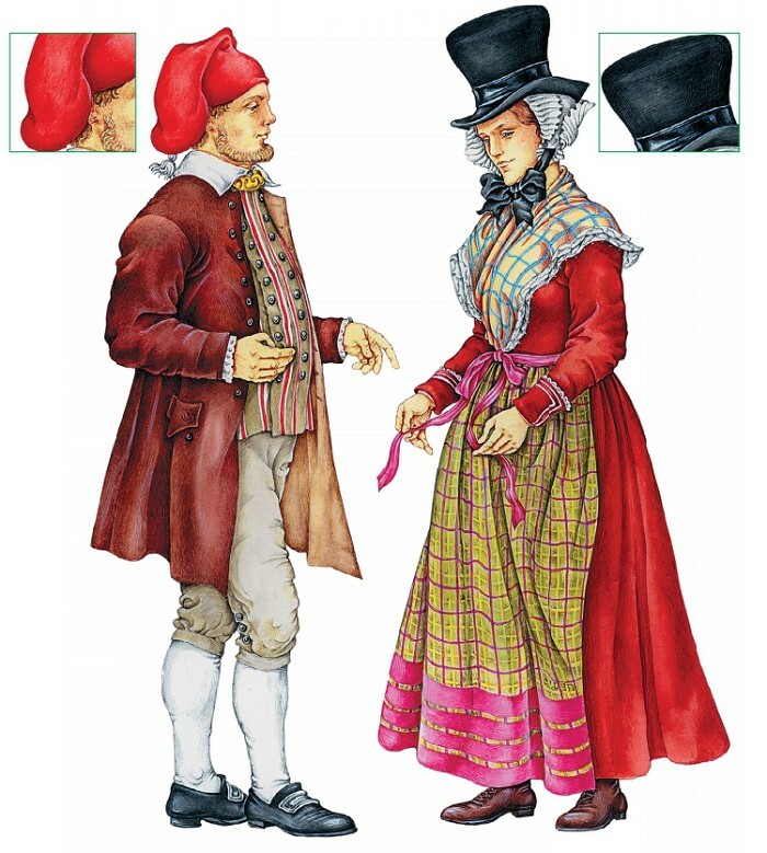 Богатые женщины нередко еще носили нечто вроде головной повязки, покрывавшей заплетенные в косы волосы и состоявшей из цветных или вышитых золотом полотняных лент. Обвитые вокруг головы, эти ленты принимали форму то шара, то сахарной головы, то какую-либо иную фантастическую форму.